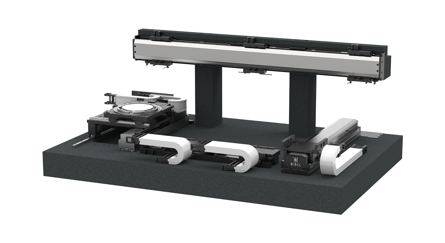 德瑞精工芯片平台方案多应用于LENS芯片、激光芯片、硅光芯片等产品。适配外观检测、电性能(常温/高温/低温)检测等检测工艺。采用直线电机高精度定梁龙门结构,达到单轴重复定位精度±2μm,蓝膜模组自动上下料,高精度双工位转台提高测试效率。