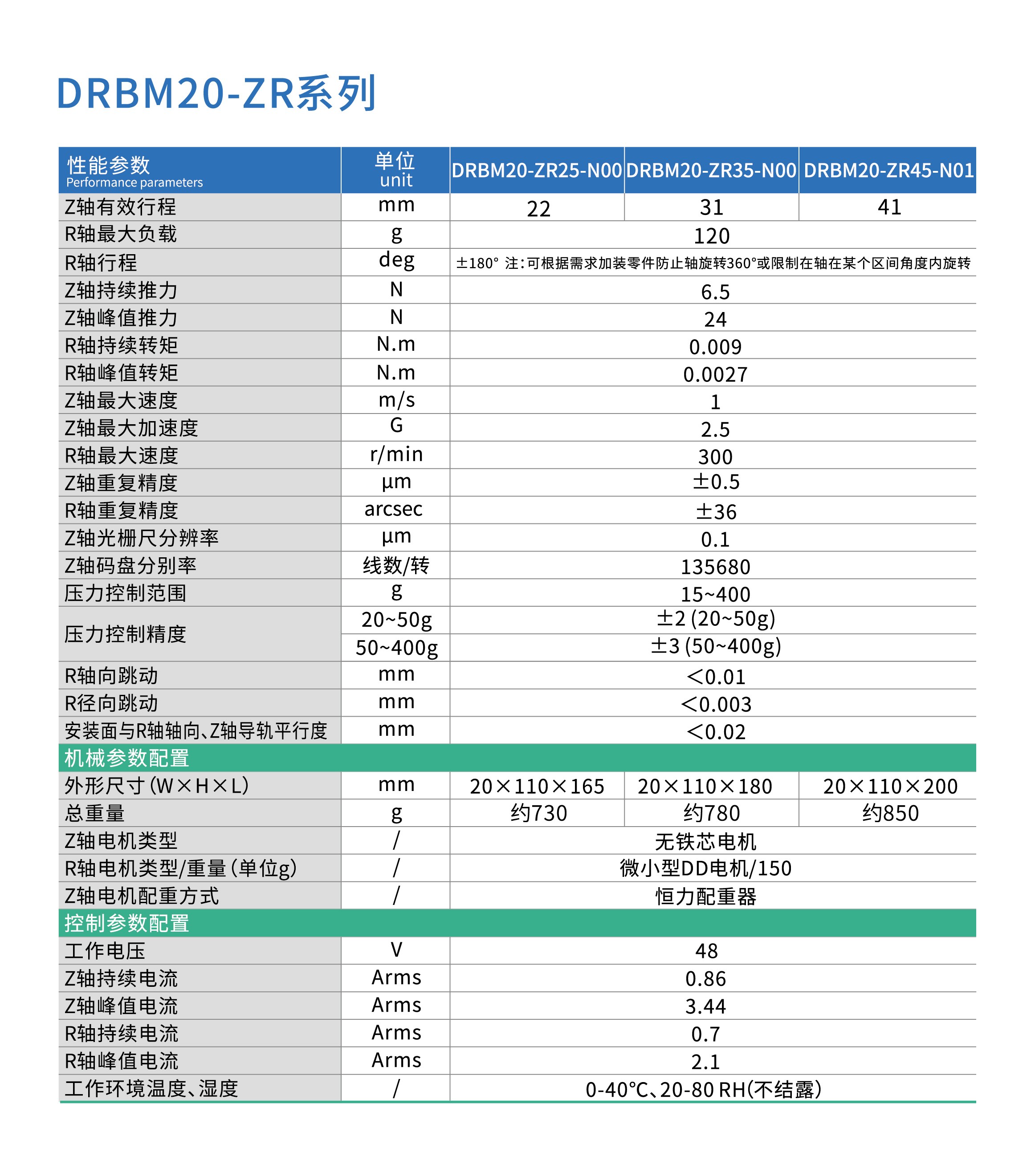 | Z轴:无铁芯电机 | R轴:微小型DD电机 |