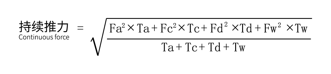 为保障电机长期稳定运行,需计算"持续推力"(覆盖加/减速、匀速、停滞等全周期):